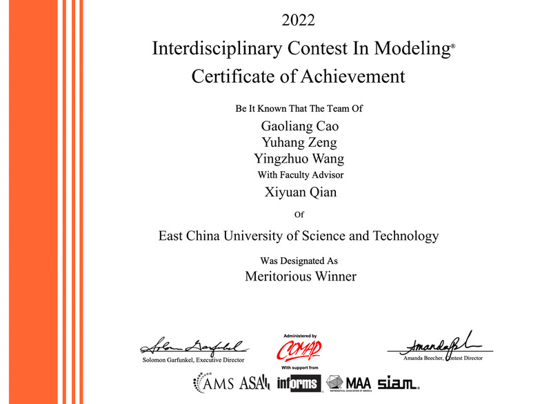 在全国大学生数学建模竞赛和美国大学生数学建模竞赛中均取得了较好成绩,近五年共获得全国大学生数学建模竞赛一等奖7项、二等奖12项;美国大学生数学建模竞赛特等提名奖1项、一等奖14项、二等奖20项。