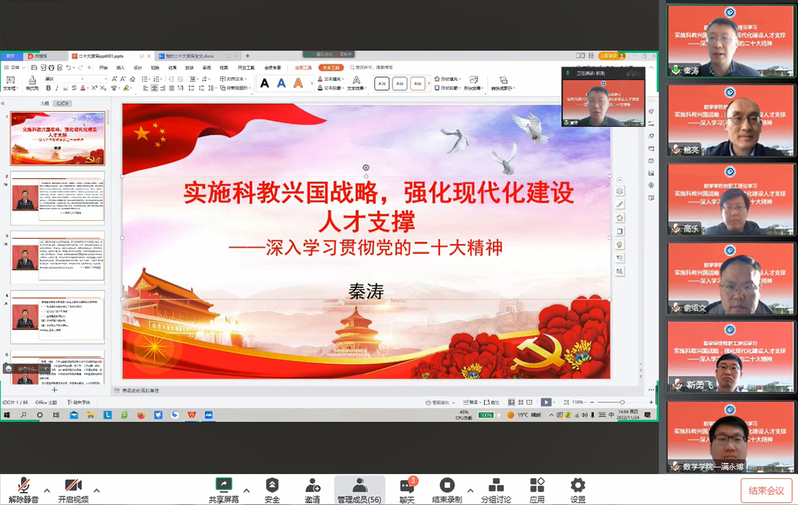 党委组织开展教职工理论学习,邀请学校宣讲团成员,法学院秦涛副教授作题为“实施科教兴国战略,强化现代化建设人才支撑——深入学习贯彻党的二十大精神”专题报告。报告会由学院党委书记鲍亮主持,学院全体教师在线参加学习。