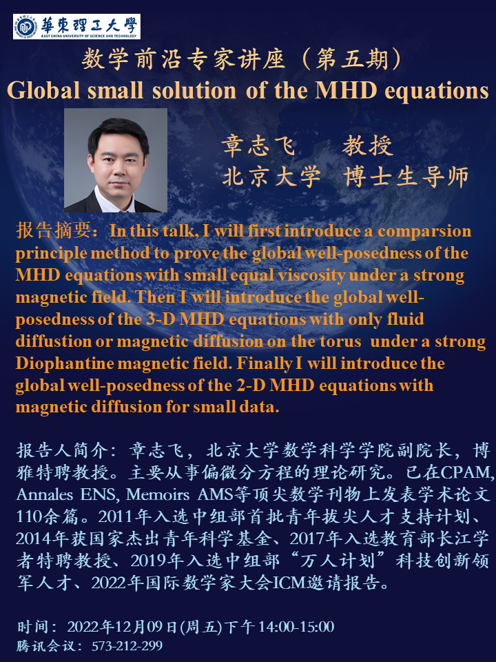 数学前沿专家讲座(第五期)Global small solution of the MHD equations