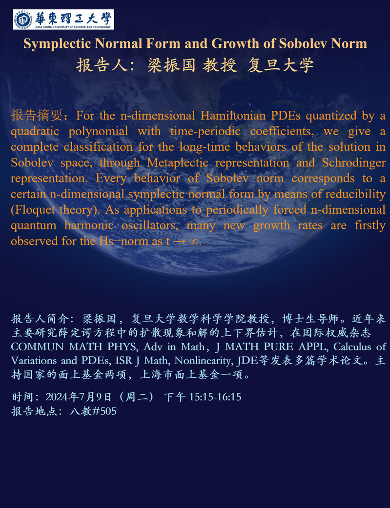 Symplectic Normal Form and Growth of Sobolev Norm